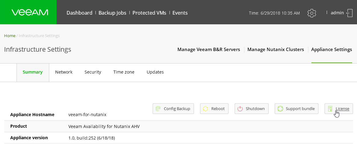 Прокси развертывается как виртуальная машина на кластере Nutanix AHV, по одной машине на каждый кластер (так что если вы планируете бэкапить ВМ-ки с двух кластеров, вам понадобится развернуть два прокси). Для развертывания нужно в качестве загрузочного диска у ВМ в кластере Nutanix AHV Cluster указать файл VMDK, специально подготовленный Veeam и скачанный с сайта.