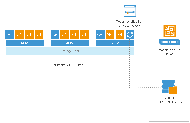 Примечание: Подробнее об архитектуре рассказывается в Veeam Availability for Nutanix AHV Best Practices (на англ.языке).