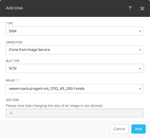 Как уже говорилось, для развертывания прокси достаточно указать подготовленный Veeam диск VMDK в качестве загрузочного диска у ВМ в кластере Nutanix AHV Cluster.